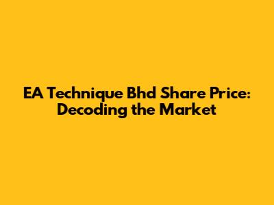 Hey there, finance enthusiasts! Ever wondered about EA Technique Bhd share price? You're in the right place! We're diving deep into the world of this Malaysian company, looking at what influences its stock value and what you, as an investor, should keep an eye on. Buckle up, because we're about to embark on a journey through market trends, financial performance, and everything in between. This exploration will provide insights into the EA Technique M Berhad share price, crucial for anyone looking to understand or invest in this stock. We'll break down the key factors affecting its price and offer a glimpse into the company's performance, helping you make informed decisions. Whether you're a seasoned investor or just starting out, this guide will provide a comprehensive overview of EA Technique Bhd's share price dynamics. Let's get started, shall we?