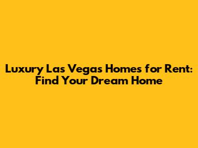 Luxury Las Vegas Homes For Rent: Find Your Dream Home
