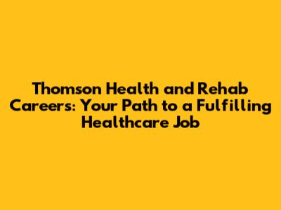 Thomson Health And Rehab: Your Career Path